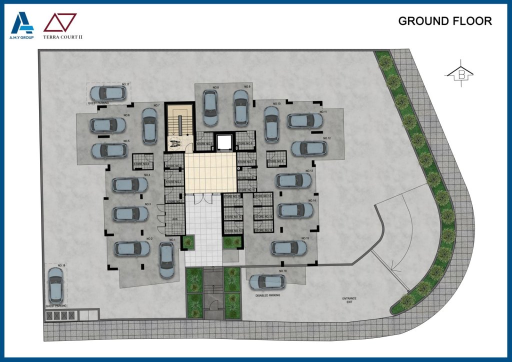 This stylish 4-story building features 15 premium apartments, offering a mix of 1 & 2-bedroom layouts with spacious covered verandas. The ground floor includes covered parking for residents.