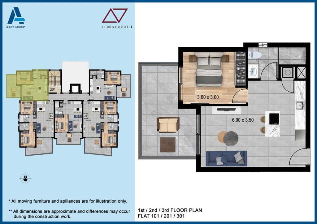 Each apartment is designed with a modern open-plan concept, featuring custom-made kitchen cabinets, built-in wardrobes, large double-glazed windows, and high-quality finishes.