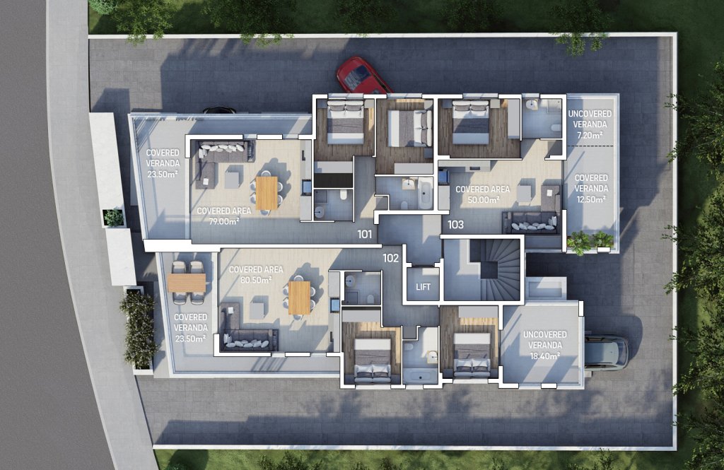 Experience the epitome of modern luxury and natural tranquility at our residence nestled in vibrant Limassol city center. With just a 1-minute drive from the highway and close proximity to Agios Georgios Havouzas church, our prime location is enhanced by a scenic green area opposite the building.