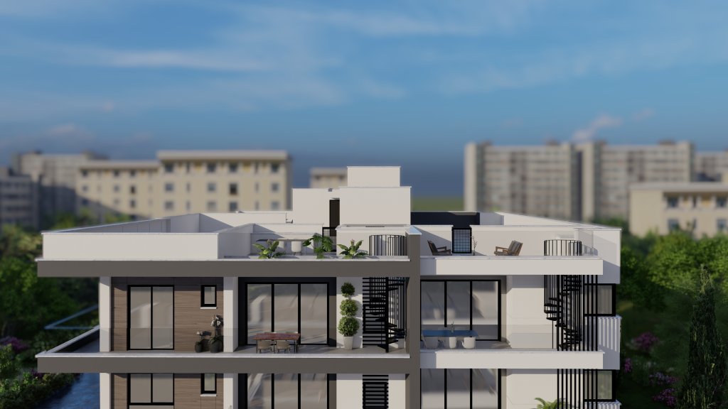 The top-floor apartments feature spacious roof gardens, providing residents with private outdoor spaces and stunning views. Designed with high-quality materials and modern aesthetics, this development ensures a premium living experience.